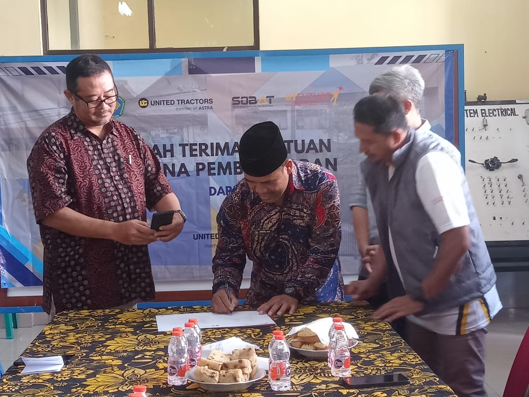 TOPIK MEDIA – Komitmen dalam mendukung kemajuan dunia pendidikan terus ditunjukkan oleh United Tractors. Kali ini, perusahaan nasional tersebut memberikan bantuan sarana pembelajaran kepada SMK Banjar Asri Cimaung, Kabupaten Bandung, dalam bentuk 1 unit mobil praktik, 2 laptop, dan 200 buku pembelajaran.