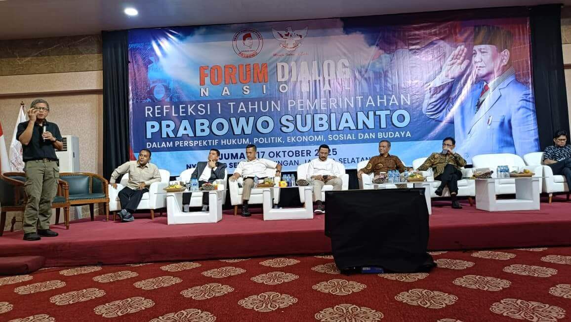 TOPIK MEDIA, JAKARTA – Dalam rangka memperingati satu tahun pemerintahan Presiden Prabowo Subianto dan Wakil Presiden Gibran Rakabuming Raka, sekaligus merayakan Hari Ulang Tahun ke-74 Presiden Prabowo Subianto, diselenggarakan Forum Dialog Nasional: Refleksi 1 Tahun Pemerintahan Presiden Prabowo Subianto di Gedung Nyi Ageng Serang, Jalan HR. Rasuna Said No.22 Kuningan, Jakarta Selatan, pada Jum’at 17 Oktober 2025.