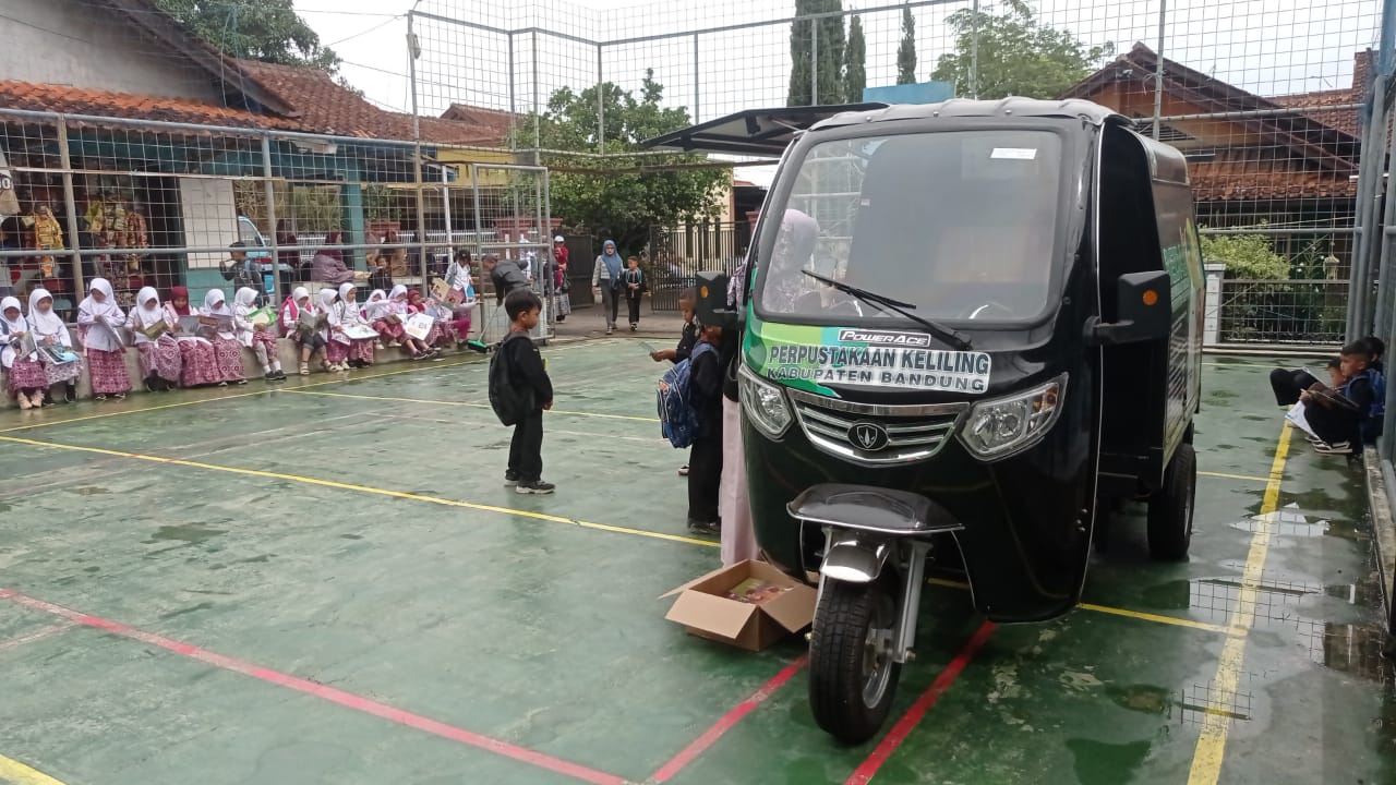Terpantau pada hari Kamis ini, Motor Baca Kecamatan Cangkuang sedang melakasanakan pelayanan di SDN 1 Setragalih Cangkuang Kabupaten Bandung.