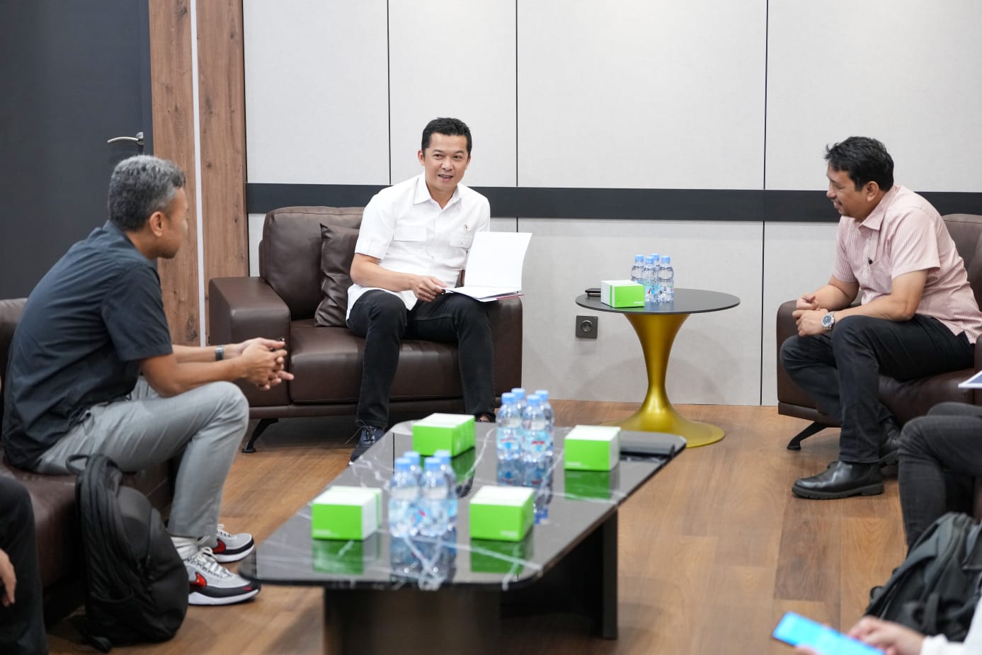 TOPIK MEDIA – Wakil Menteri Pemuda dan Olahraga (Wamenpora) RI Taufik Hidayat menerima audiensi CNN Indonesia di Lantai 8, Graha Kemenpora, Jalan Gerbang Pemuda Nomor 3 Senayan, Jakarta Pusat, Rabu (19/2) pagi.
