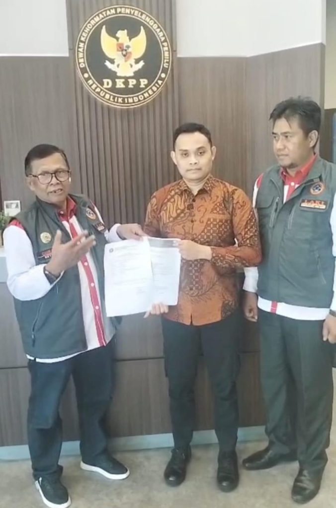 Agar tidak terjadi polemik berkepanjangan Guras didampingi Sekretaris Dadan Suryansyah membuat pengaduan di Kantor Dewan Kehormatan Penyelenggara Pemilu/DKPP RI Jakarta Kamis 24 April 2025 sebagai teradu Riza Nasrul Falah Ketua Bawaslu KBB dan Rahmat Bagja Ketua Bawaslu RI.